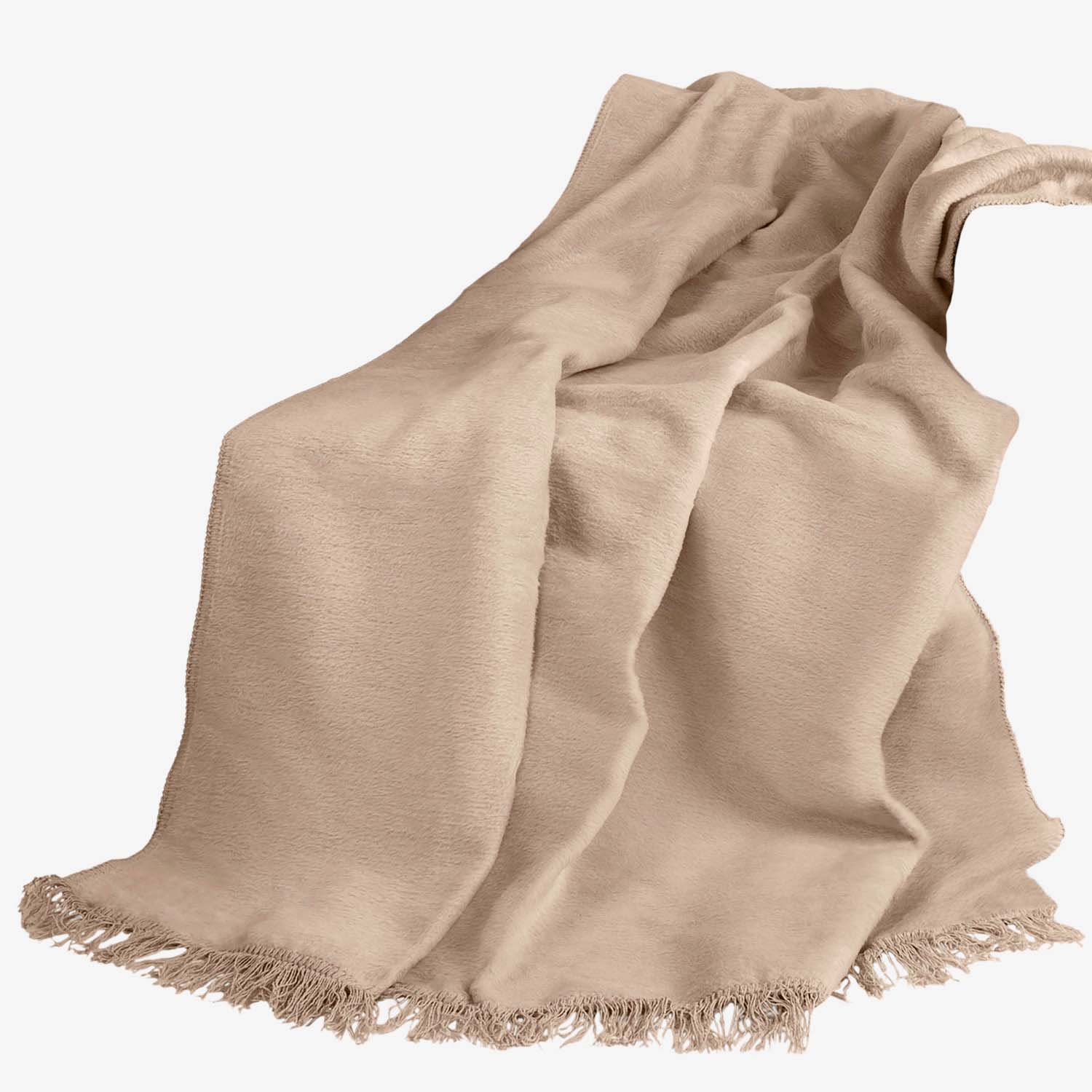 Koc beżowy z frędzlami - bardzo porządny, gruby i ciepły! Nie mechaci się. Charakteryzują się wysoką jakością wykonania i użytych materiałów. Są miękkie i delikatne, a dzięki swej funkcjonalności doskonale zastępują tradycyjne narzuty na łóżko. Pakowane są do estetycznej torby PVC na zamek błyskawiczny. Koce wyprodukowano z tkanin posiadających certyfikat.