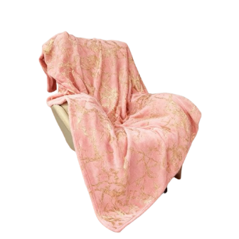 Lekki i przyjemny w dotyku koc z mikrofibry, idealny do codziennego użytku. Z jednej strony zdobi go stylowy nadruk w złoty marmurek, który nadaje wnętrzu nowoczesny, elegancki charakter. Druga strona jest jednolita i wyjątkowo miękka, otulająca i komfortowa.