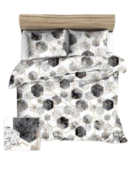 Komplet pościeli z kory - 180x200 -Geometryczna/brąz/biała - Polska