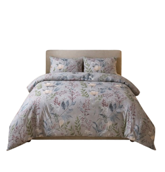 Komplet pościeli z kory Kwiaty i liście/szara- 140x200- - Polska
