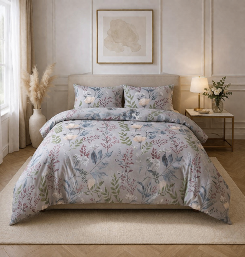 Szukasz pościeli, która łączy elegancję, komfort snu i wysoką jakość wykonania? Ten wyjątkowy komplet pościeli to propozycja dla osób ceniących stylowe wnętrza i dopracowane detale. Delikatny, botaniczny wzór w subtelnych odcieniach szarości, beżu i zieleni doskonale wpisuje się w nowoczesne oraz klasyczne aranżacje sypialni.