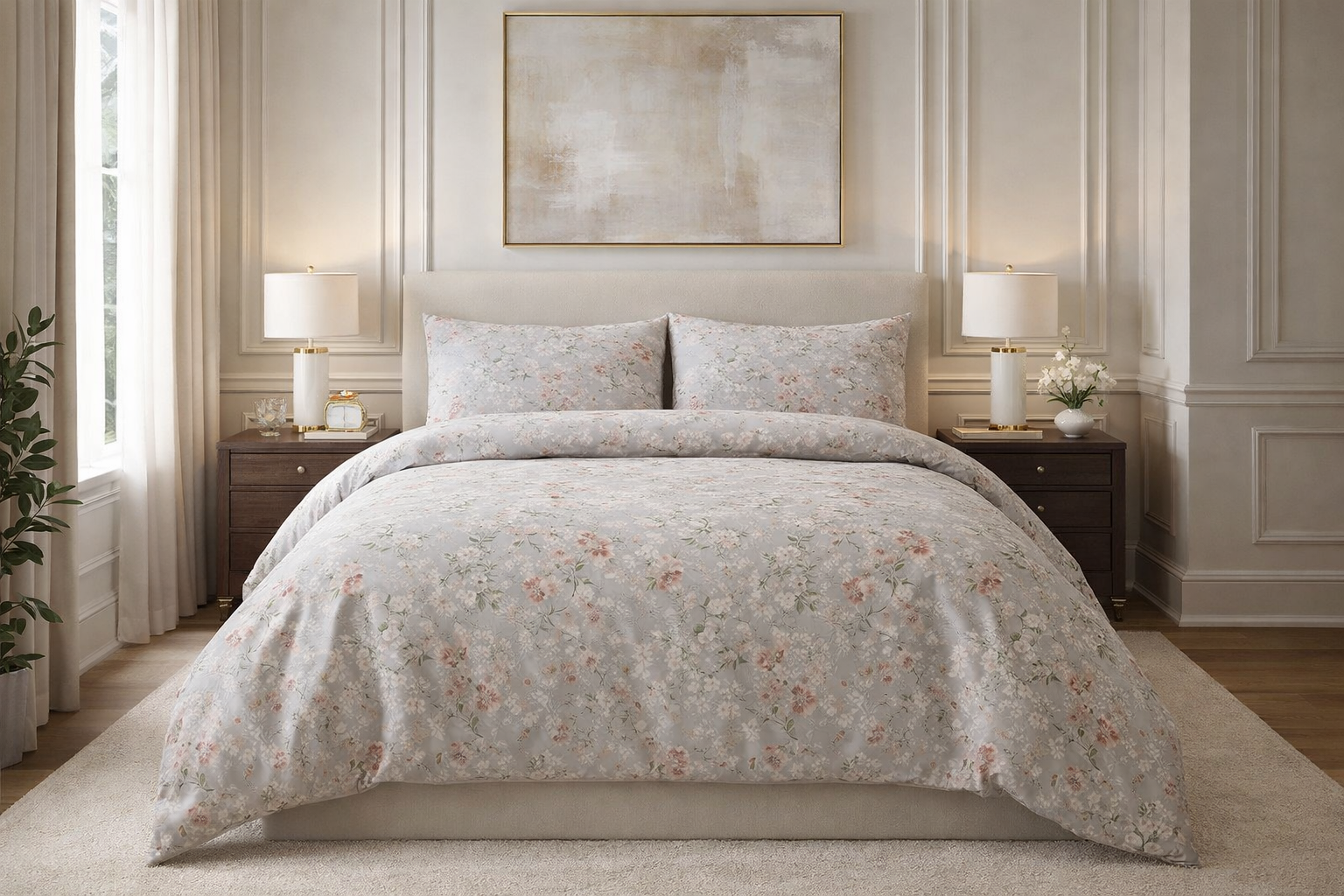 Taka kompozycja idealnie wpisuje się w aktualne trendy wnętrzarskie – dodaje sypialni ciepła, przytulności i luksusowego charakteru. Pościel doskonale prezentuje się zarówno w nowoczesnych, jak i klasycznych aranżacjach.