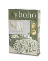 Pościel satyna bawełniana BOHO 200x200 – modna zielona pościel w liście | 100% bawełna premium