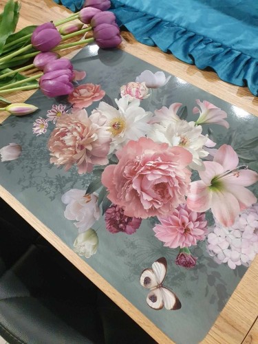 Podkładka na stół - Piwonie/kwiaty motyle-- 30x40 cm