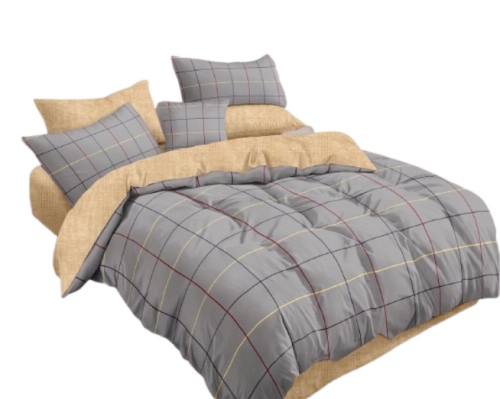 Pościel- 200x200-Kratka/szara/brąz/żółta + prześcieradło