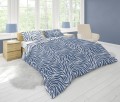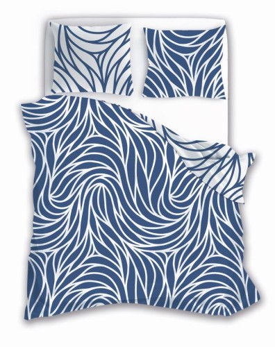 Pościel POLSKIEGO PRODUCENTA - FARO z motywem niebieskich wzorów na białym tle, a z drugiej strony białe wzory na niebieskim tle.