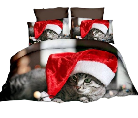 Pościel 3D - Świąteczny kot - 140x200 cm - 3 części