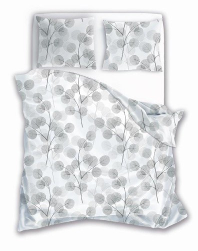 Pościel bawełniana POLSKIEGO PRODUCENTA - FARO z motywem szarych galązek na białym tle. Pościel dwustronna.