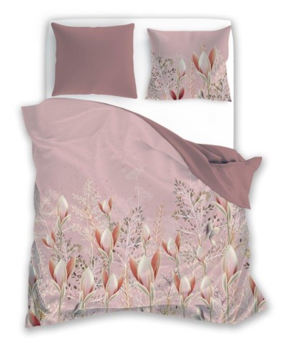 Pościel bawełniana POLSKIEGO PRODUCENTA - FARO z motywem kwiatów magnoli na jasnoróżowym tle.
