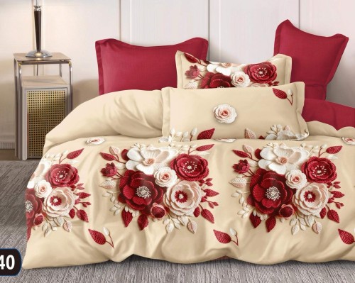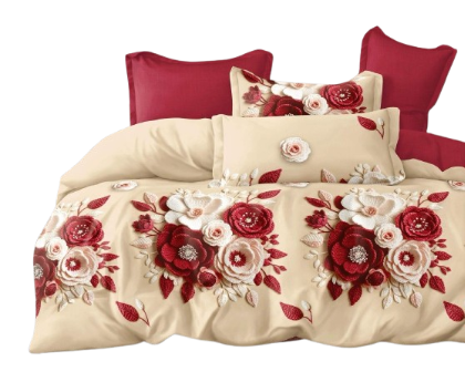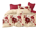 Pościel Czerwone kwiaty/krem - 200x220 + prześcieradło
