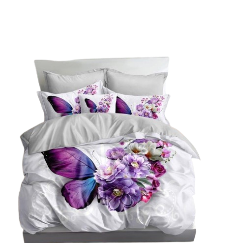 Elegancka, stylowa pościel z motywem motyla i kwiatów.