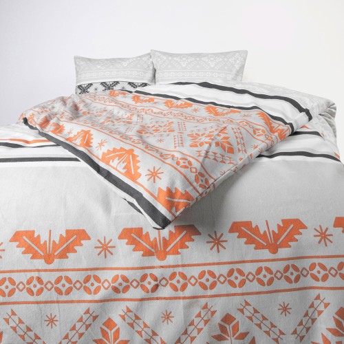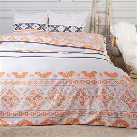 Pościel Flanelowa - 140x200 - Boho pomarańcza/biała -BARDZO GRUBA - POLSKA