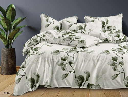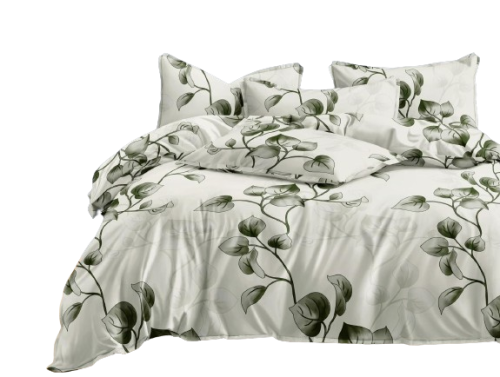 Pościel Gałązki listki zieleń/krem - 200x200 + Prześcieradło