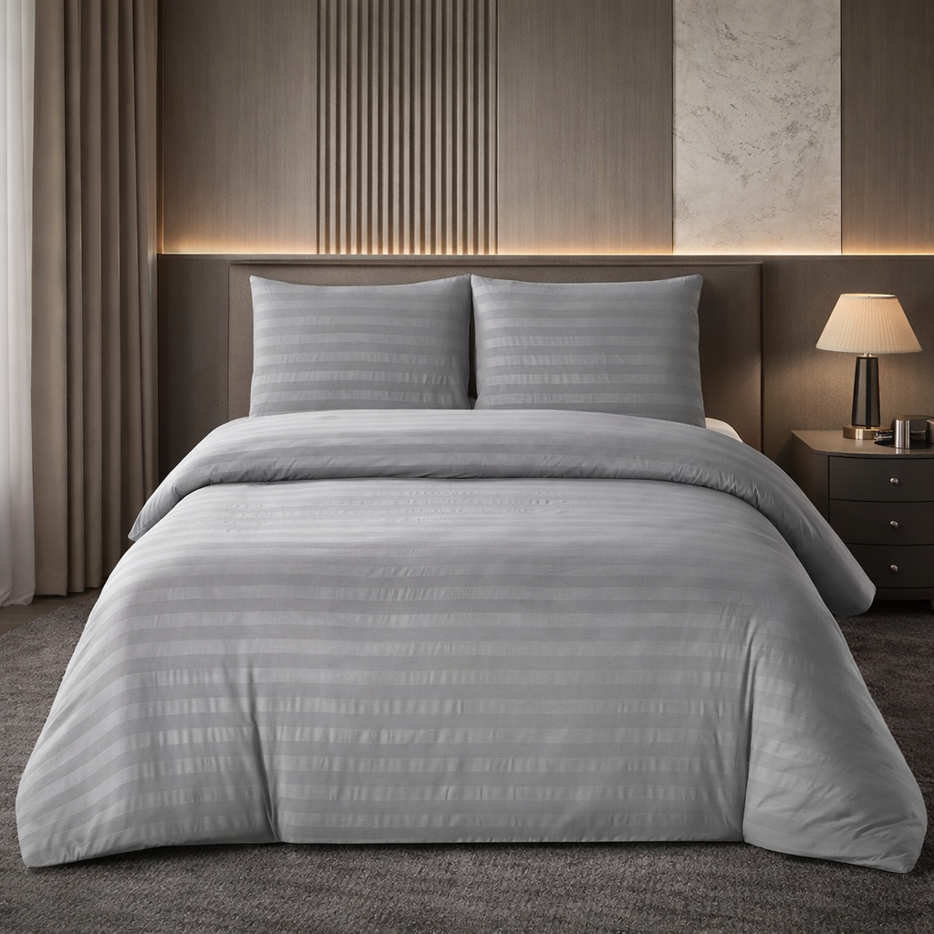 Pościel Jasno-szara w pasy 180x200- 3 cz.
