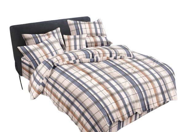 Wprowadź do swojej sypialni przytulną elegancję z naszym kompletem pościeli w niebieską i pomarańczową kratkę na kremowym tle. Ten harmonijny wzór łączy klasyczną kratkę z kobiecym akcentem, tworząc wyjątkową atmosferę pełną ciepła i uroku.