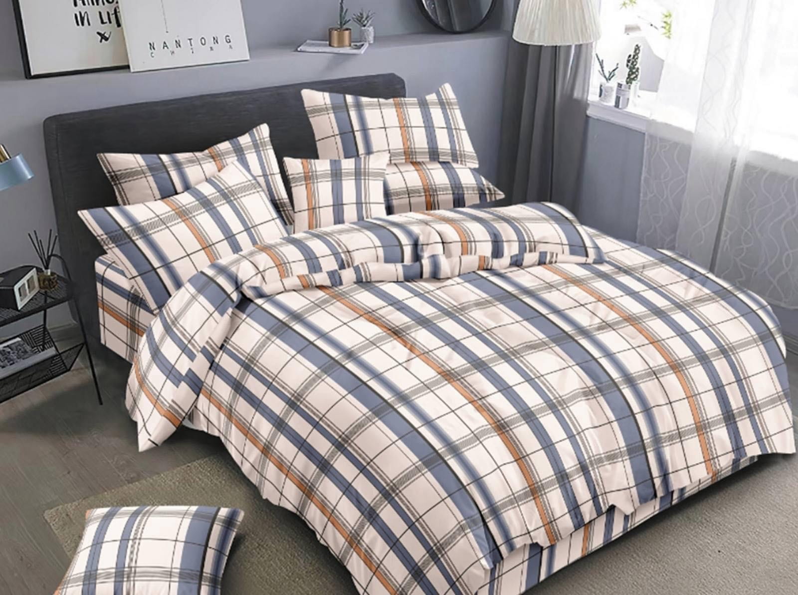 Pościel - Krata/niebieska/ruda/krem-200x200 + prześcieradło