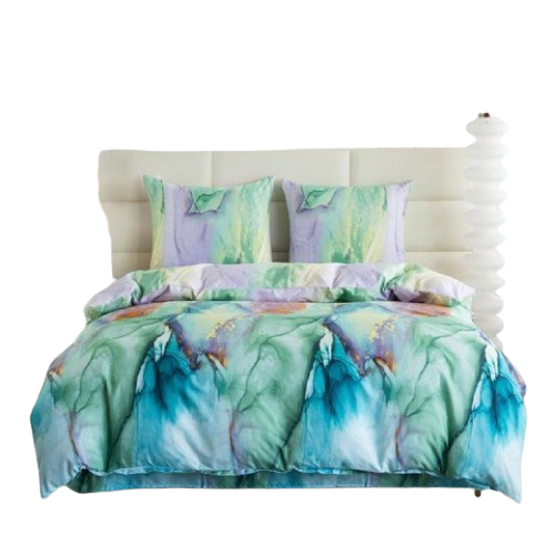 Elegancka, stylowa pościel z motywem mineralnym w kolorach: zieleni, morskiego oraz fioletu. Pościel dwustronna.