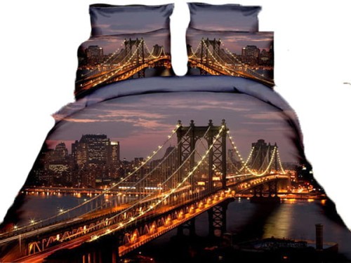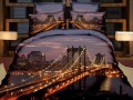 Elegancka pościel 3D z motywem mostu na tle miasta Nowy Jork. Druga strona - ciemno szara gładka.
