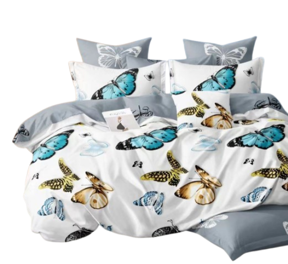 Dodaj do swojej sypialni elegancję i magię z naszą wyjątkową pościelą z motywem pięknych, mieniących się motyli na białym i szarym tle. Ten wzór łączy nowoczesny styl z nutą luksusu, wprowadzając do wnętrza harmonię i szyk.