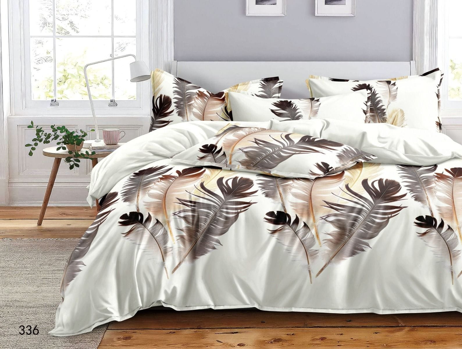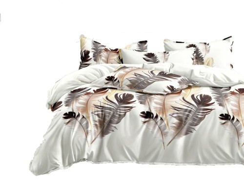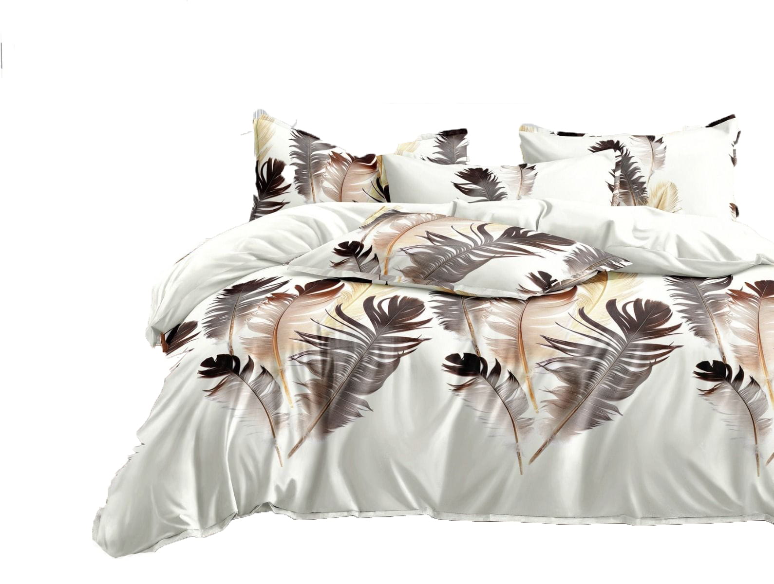 Pościel - Pióra brąz//krem- 180x200 + prześcieradło
