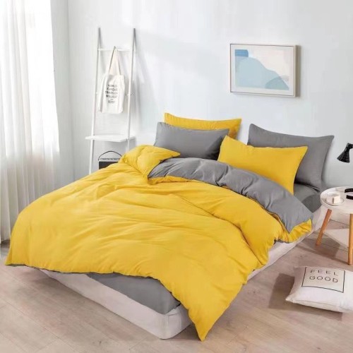 Modna i stylowa pościel w kolorze popielatym, a z drugiej strony żółtym.