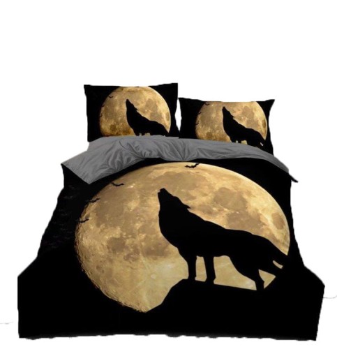 Pościel Wilk na tle księżyca/szara - 200x220 - 3 części