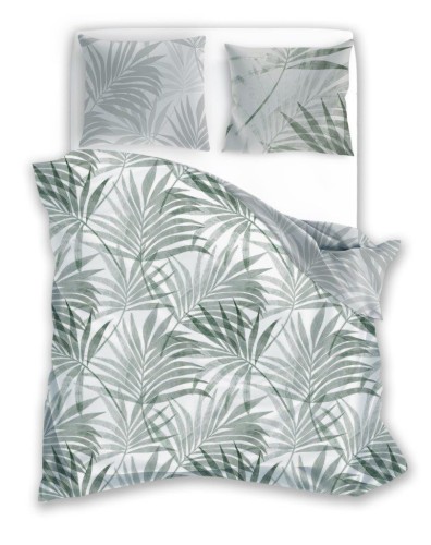 Pościel bawełna satynowa Liście palm zieleń/szara -160x200