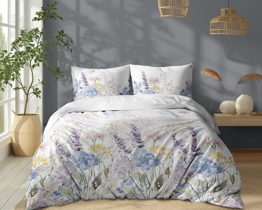 Pościel bawełniana- 140x200 - Kwiaty ogrodu Hortensje