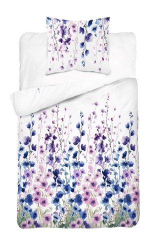 Pościel bawełniana- 140x200 - Malwy różowo-niebieskie