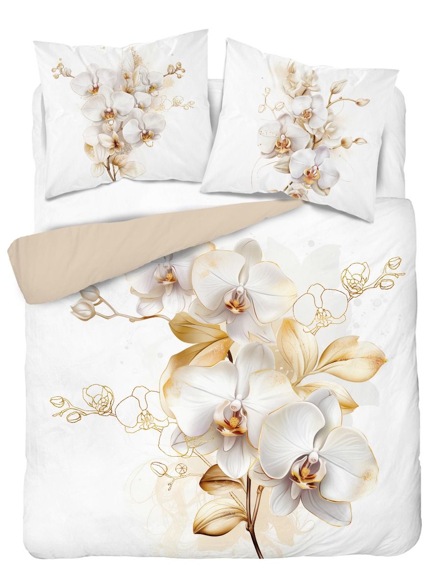 Pościel bawełniana - Białe/złote magnolie 180x200 - 3 cz.