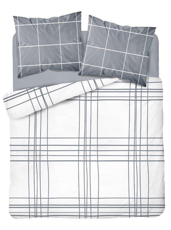 Pościel bawełniana Kratka biała/grafit- 180x200 - 3 cz