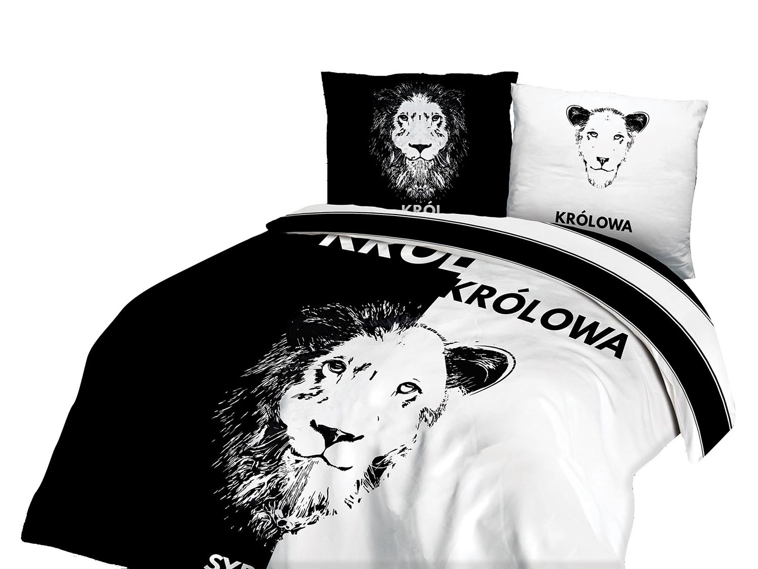 Pościel bawełniana 160x200 – 100% bawełna z napisem: Król i królowa sypialni - czarno biała - miękka, trwała | OEKO-TEX