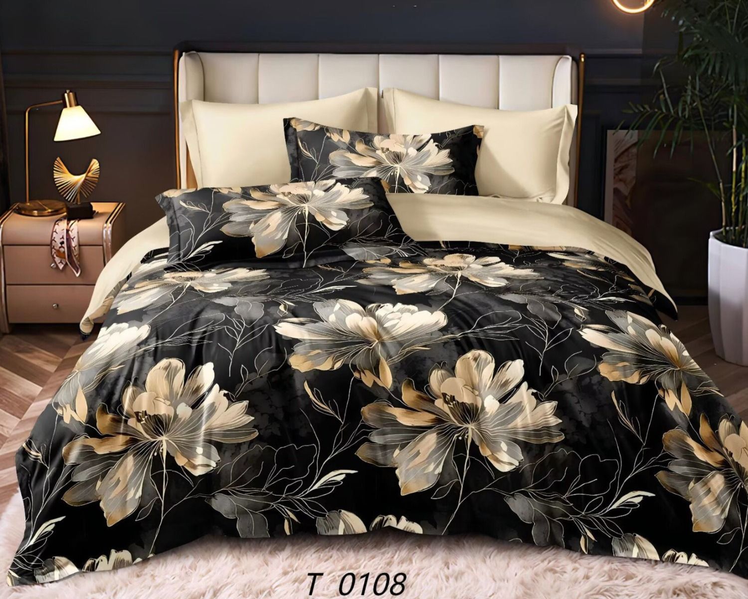 Pościel 160x200 złote kwiaty na czarnym tle – dwustronna elegancja i komfort snu