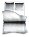 Elegancka pościel w modne wzory plastrów miodu na białym tle. Pościel jest cieniowana - od ciemniejszego do jaśniejszego koloru, z czarnym pasem na środku. Pościel gładka - szara z drugiej strony,