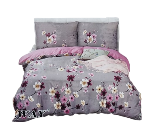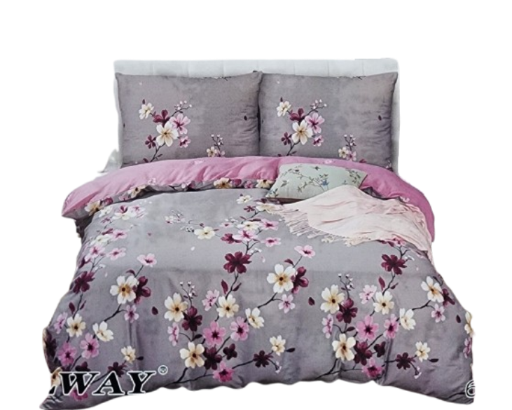 Pościel satynowa- Kwiaty wiśni/szara - 180X200 -Elway