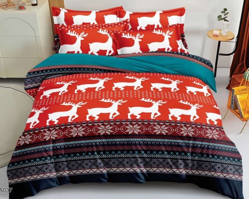 Pościel świąteczna - Renifery granat.czerwień- 180x200 - 3 cz.