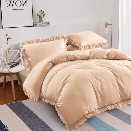 Pościel z falbanką beżowa - 160x200 - 3 cz.