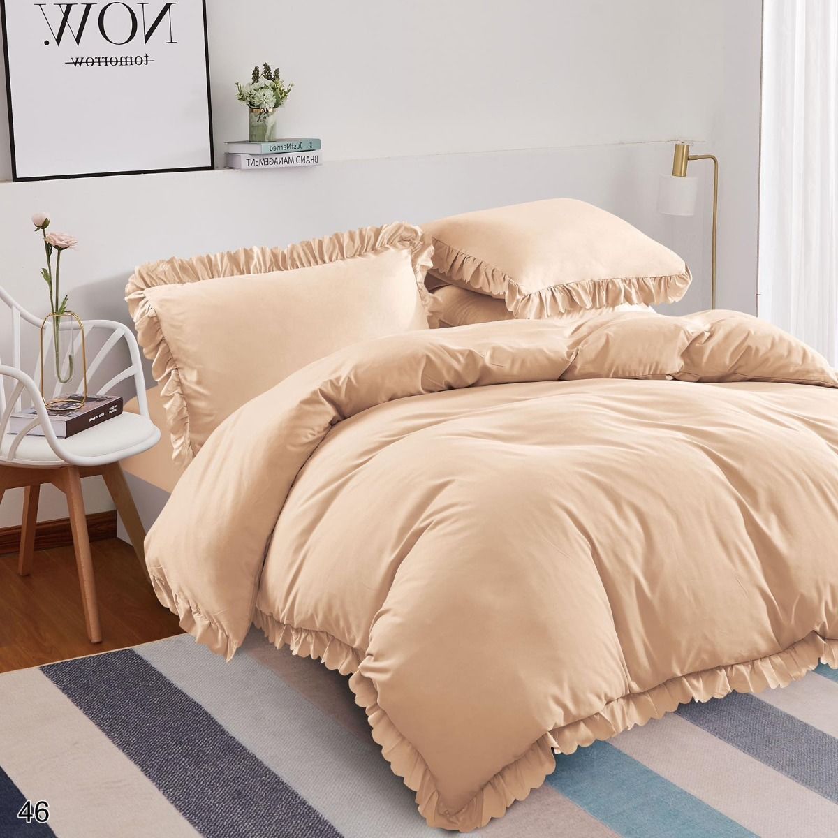 Pościel z falbanką beżowa z satyny bawełnianej – elegancja i komfort snu