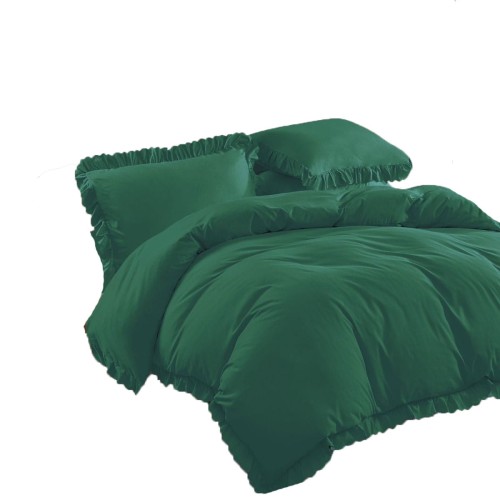 Pościel z falbanką butelkowa zieleń- 200x200 - 3 cz.