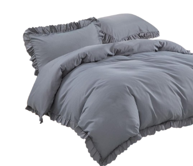 Pościel z falbanką ciemno-szara- 160x200 - 3 cz.