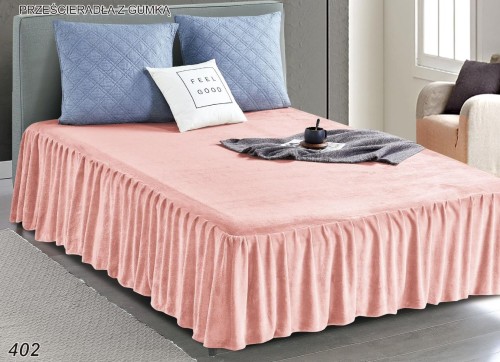 Trwałe prześcieradło z weluru, velvetu, tj. pluszowej, miękkiej tkaniny w kolorze różowym.