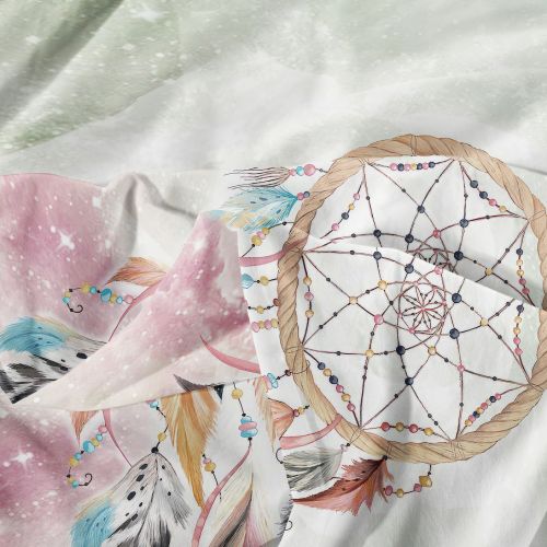 Subtelna kolorystyka oraz modny motyw łapacza snów sprawiają, że pościel pięknie prezentuje się w sypialni i nadaje jej lekkości oraz przytulnego charakteru. To propozycja, która dobrze odnajdzie się zarówno w pokoju dziecka, nastolatka, jak i w delikatnie urządzonej sypialni.